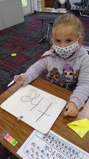We've been using our Chromebooks to learn how to navigate our Google Classroom, play ABCya and listen to stories on Epic Reading! The kids are loving this time. We're also learning to read, spell, and write our new sight words- I, see & the.